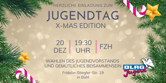 Der Jugendvorstand lädt zum diesjährigen Jugendtag ein! WANN: 20.12.2024 um 19.30 Uhr WO: Fahrzeughalle, in der Fridolin-Stiegler-Straße 19 in Bühl Alle Mitglieder, Freunde und Förderer der DLRG Ortsgruppe Bühl-Bühlertal sind herzlich eingeladen. Beim Jugendtag erfährst du, wie du vom Verein unterstützt werden kannst, wenn du etwas für dich und andere organisieren möchtest. Außerdem hast du die Gelegenheit Wünsche und Vorschläge für das kommende Jahr einzubringen. Wer Verantwortung übernehmen möchte, kann 2024 in den Jugendvorstand gewählt werden. Vorläufige Tagesordnung: TOP 1 Begrüßung TOP 2 Benennung der Protokollführung TOP 3 Regularien TOP 4 Aufgaben des Jugendvorstandes TOP 5 Bericht des Jugendvorstandes TOP 6 Bericht der Kassenprüfer TOP 7 Entlastung der Jug ... Mehr erfahren